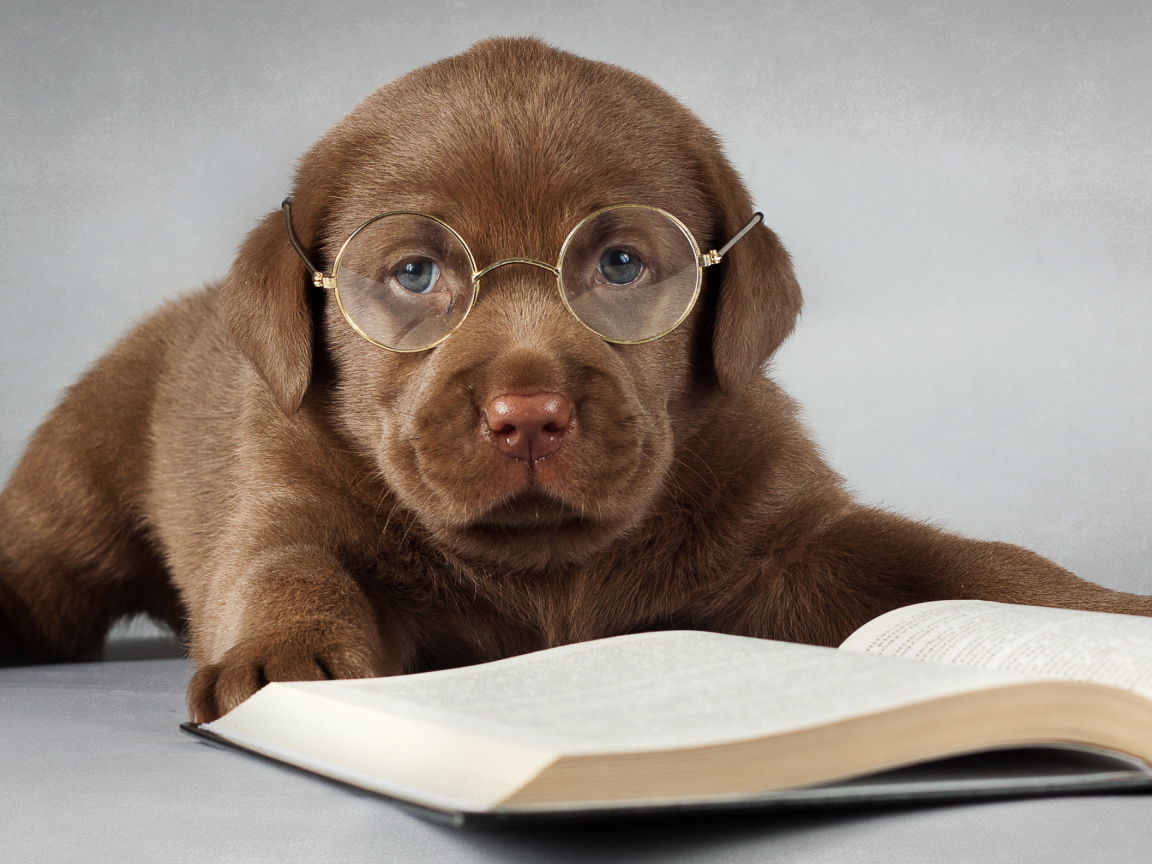 Щенок лабрадора в очках с книгой Обои для рабочего стола 1152x864