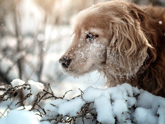 Золотистый ретривер с мордой в снегу - 3840x2160