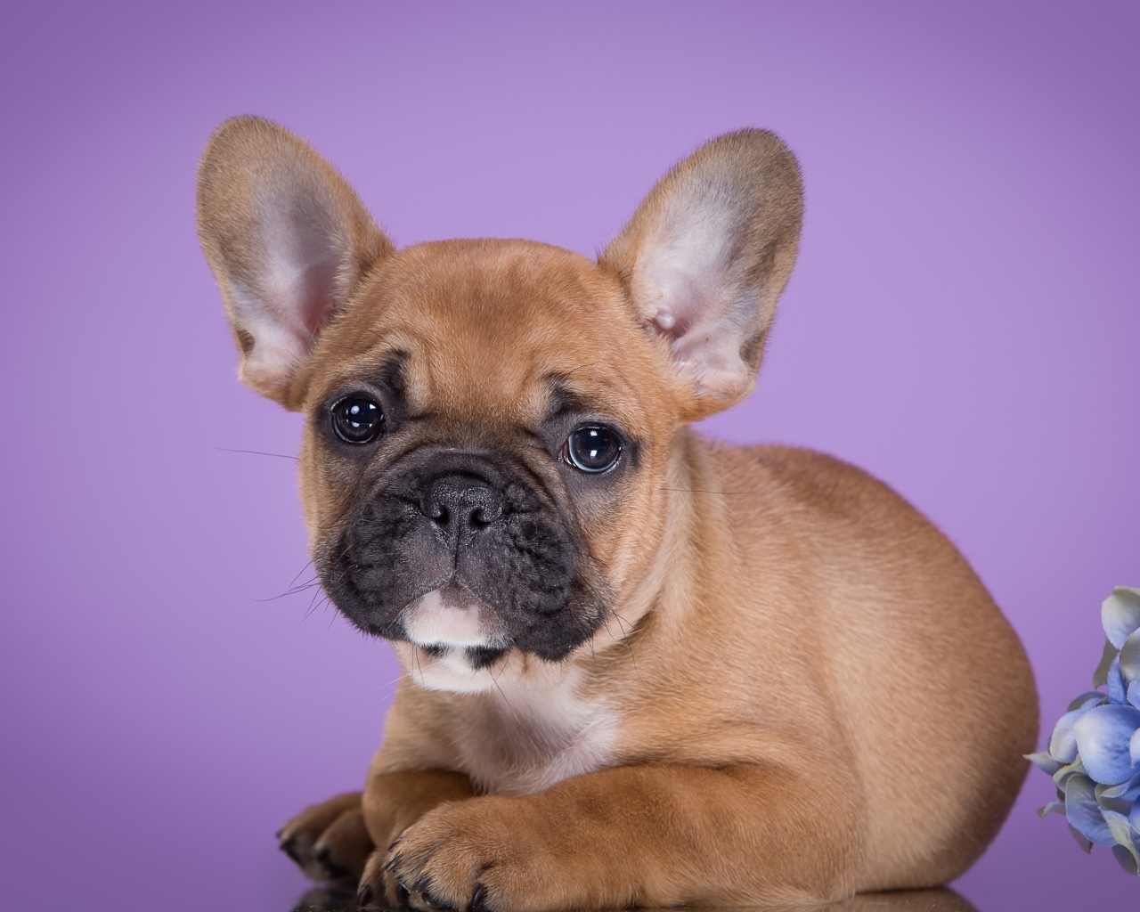 Маленький щенок французского бульдога на сиреневом фоне Обои для рабочего стола 1280x1024