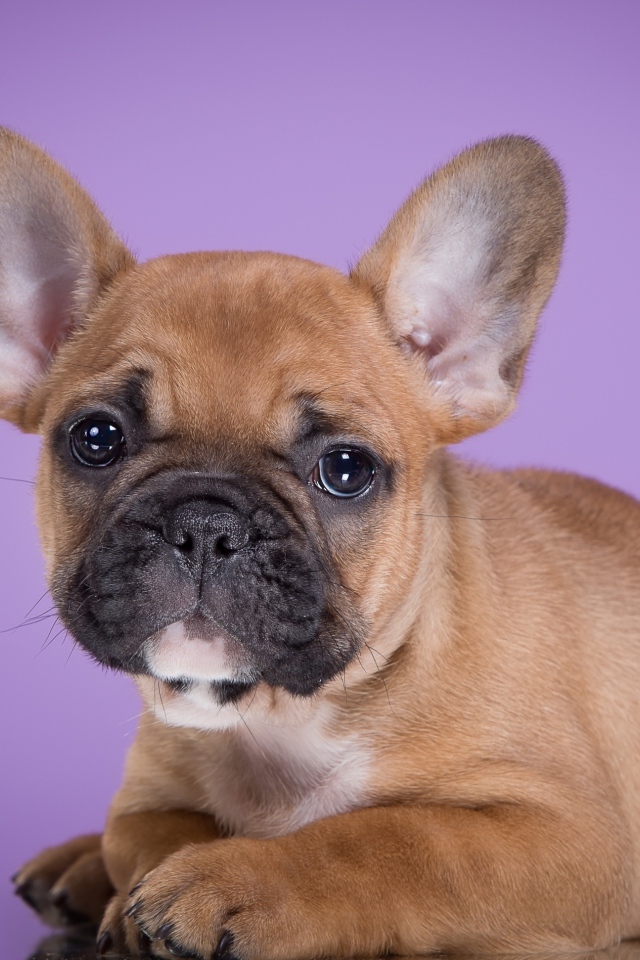 Маленький щенок французского бульдога на сиреневом фоне - 3000x1899