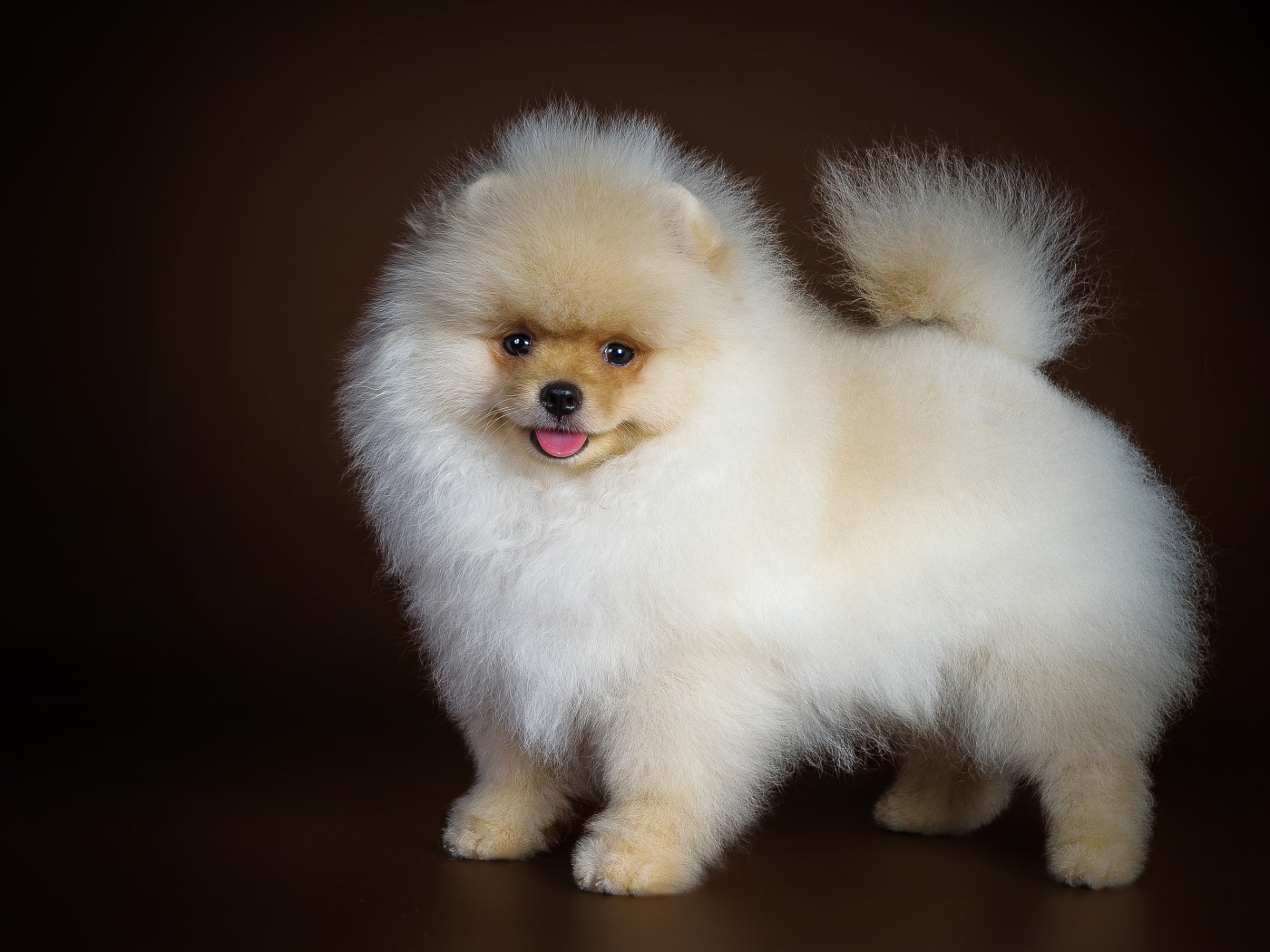 Пушистый белый шпиц с высунутым языком - 3000x2100