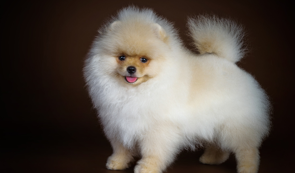 Пушистый белый шпиц с высунутым языком - 3000x2100