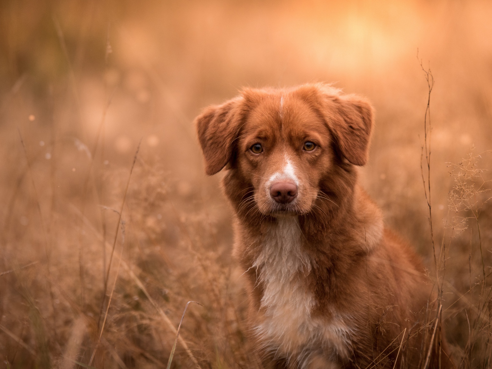 Рыжая собака сидит в траве Обои для рабочего стола 1600x1200
