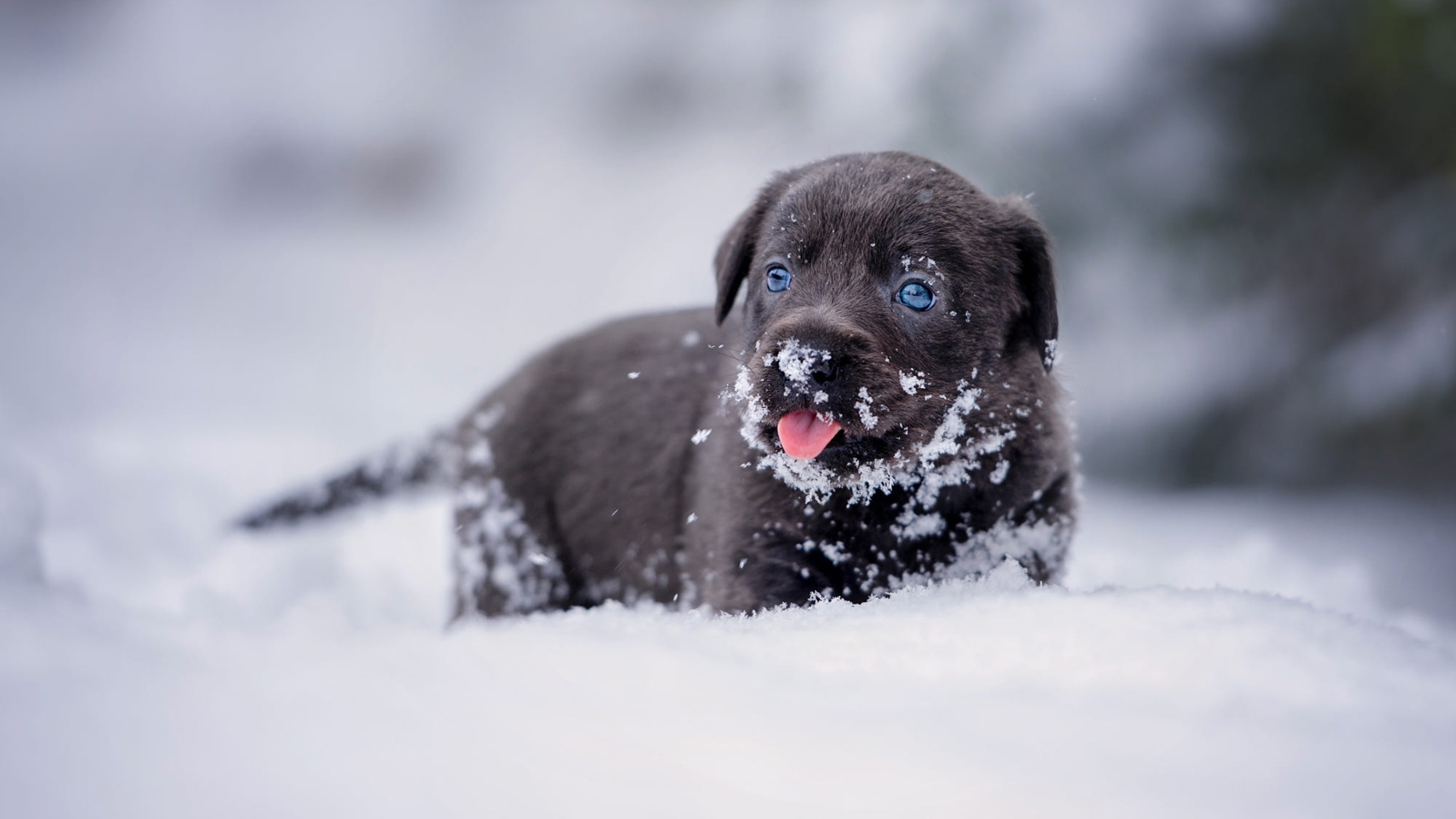Маленький щенок лабрадора в снегу - 3840x2160