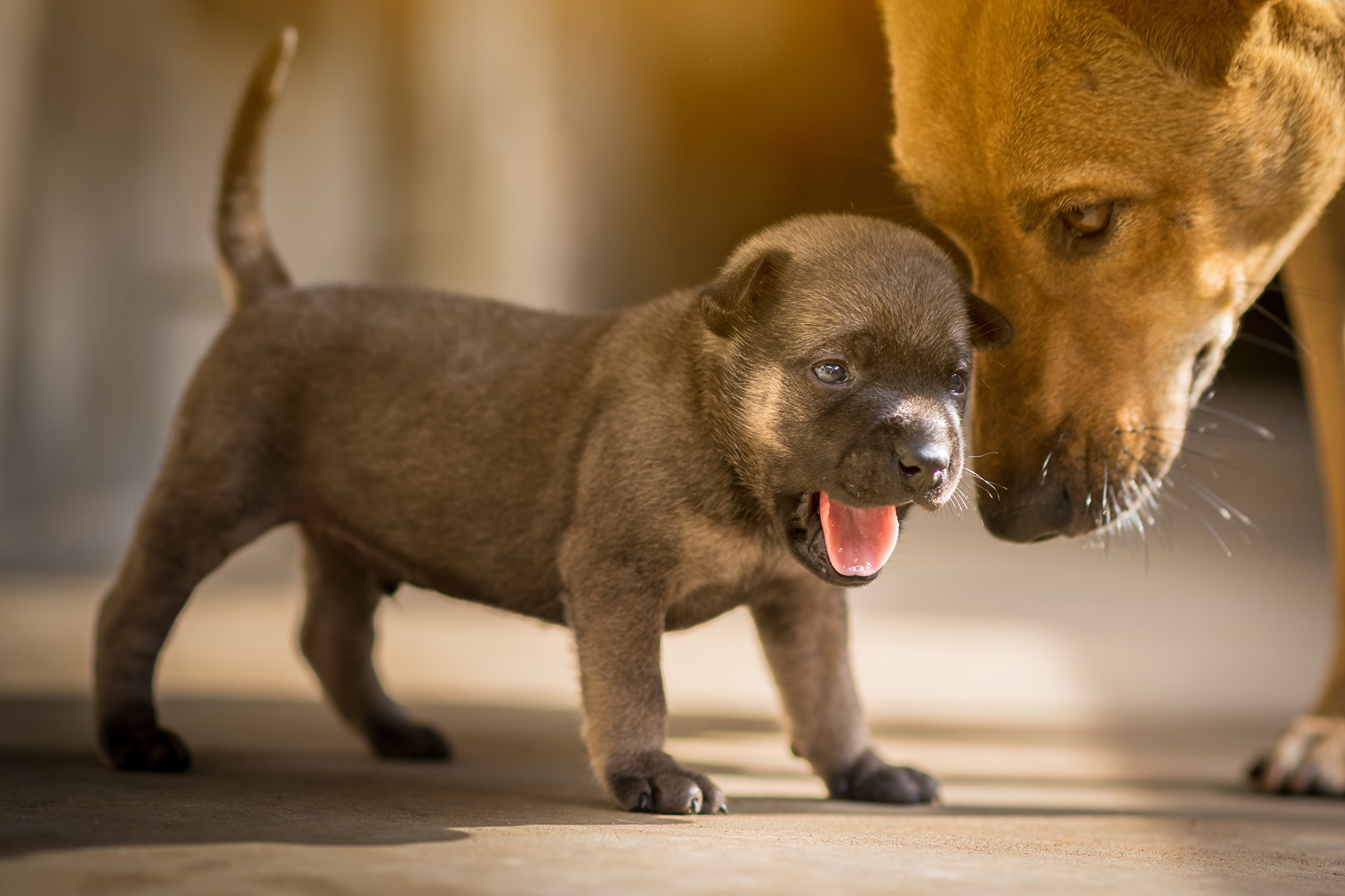Маленький щенок с открытой пастью - 2560x1706