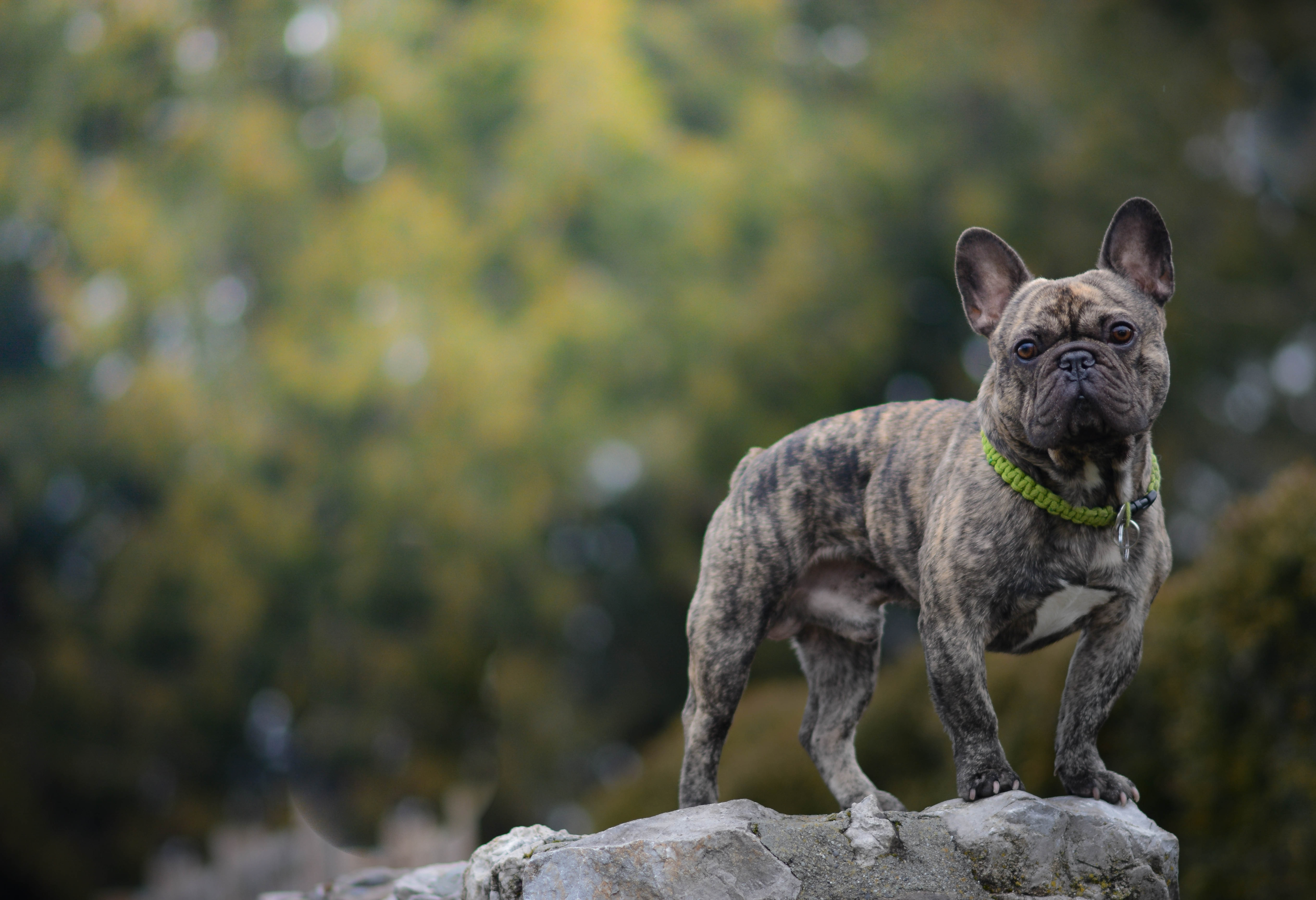 Французский бульдог стоит на камне - 3000x2053