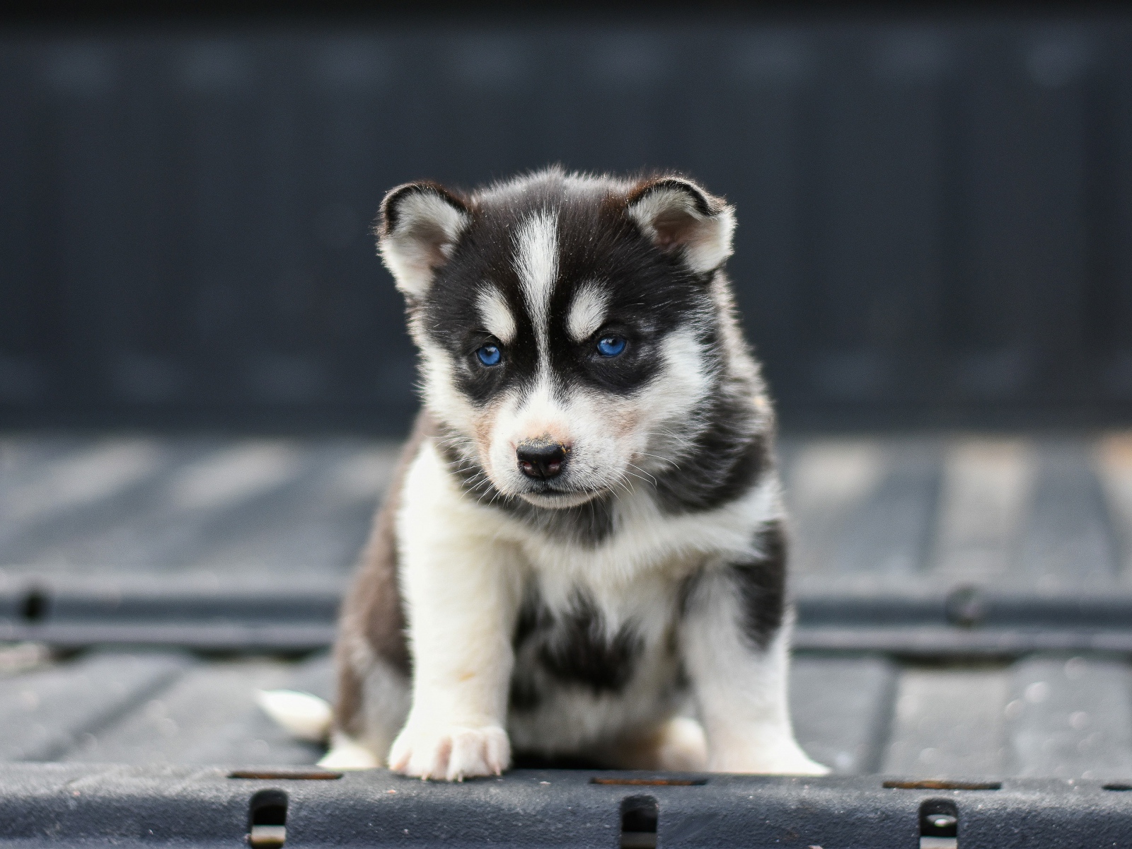 Маленький грустный голубоглазый щенок хаски - 3840x2160