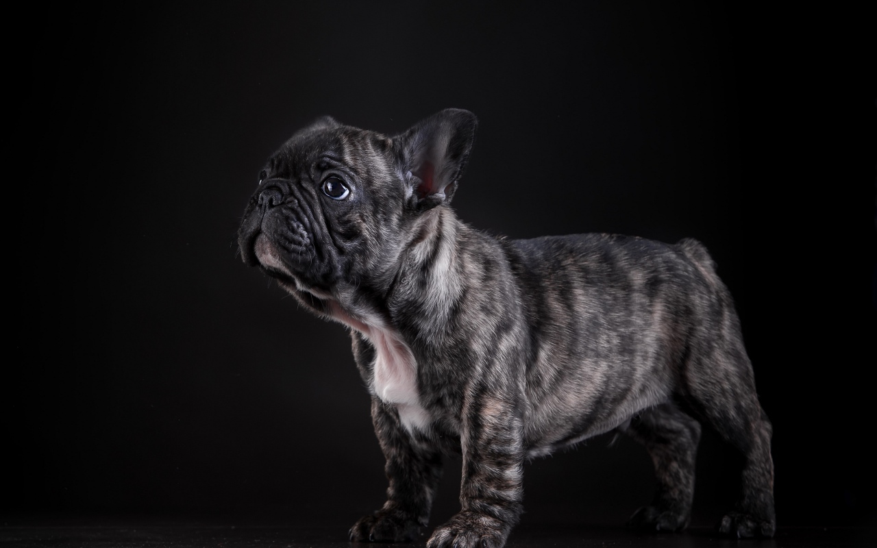 Маленький щенок французского бульдога на черном фоне Обои для рабочего стола 1280x800