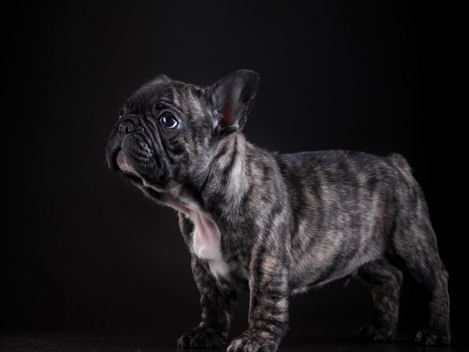 Маленький щенок французского бульдога на черном фоне Обои для рабочего стола 1600x1200