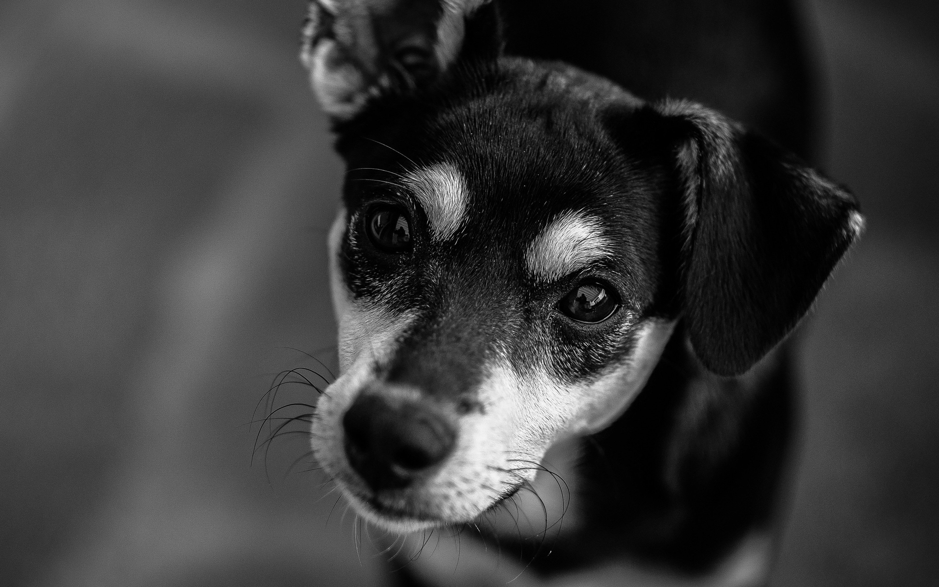 Грустный взгляд пса черно-белое фото - 3840x2400