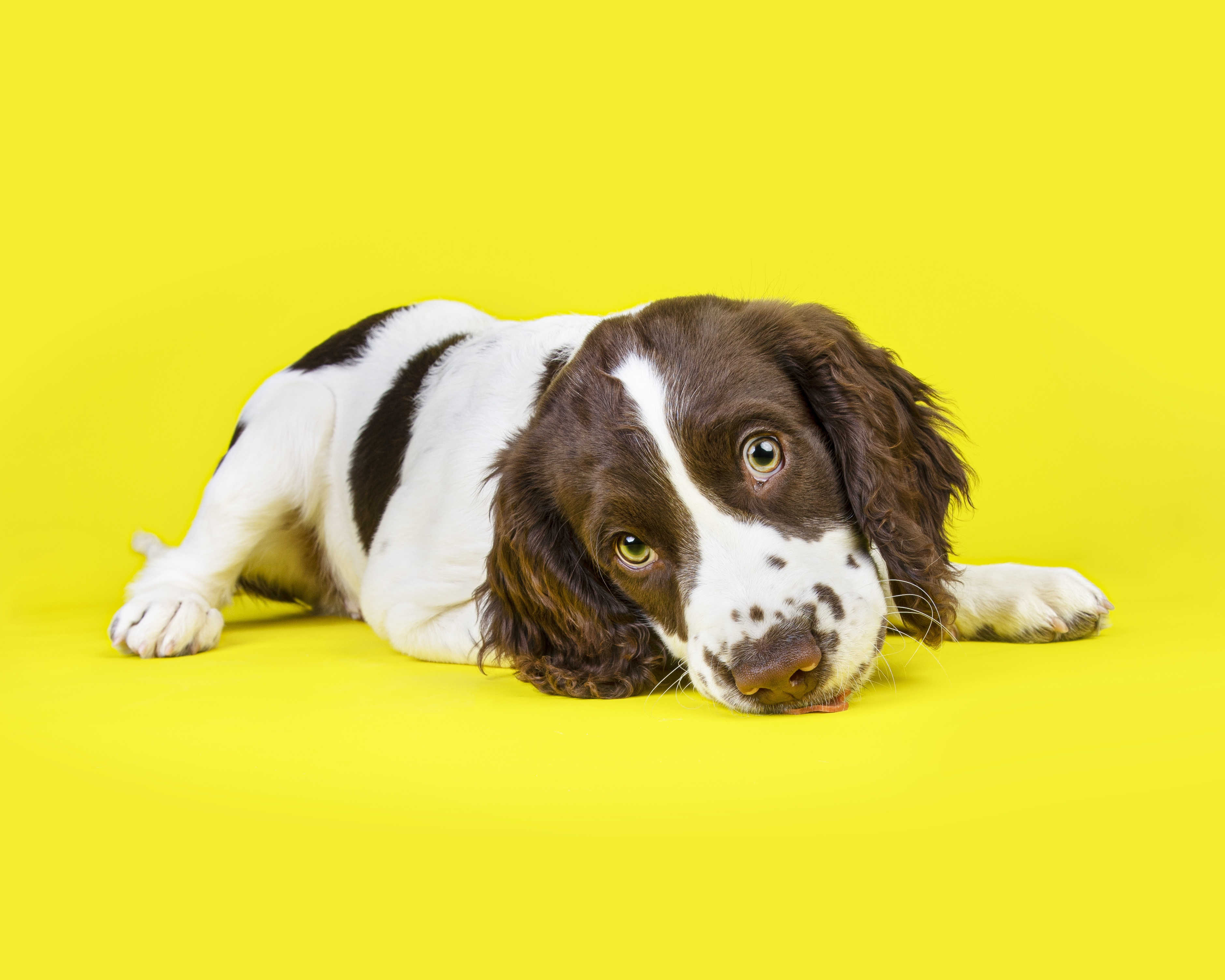 Милый щенок спаниеля на желтом фоне - 3760x3008