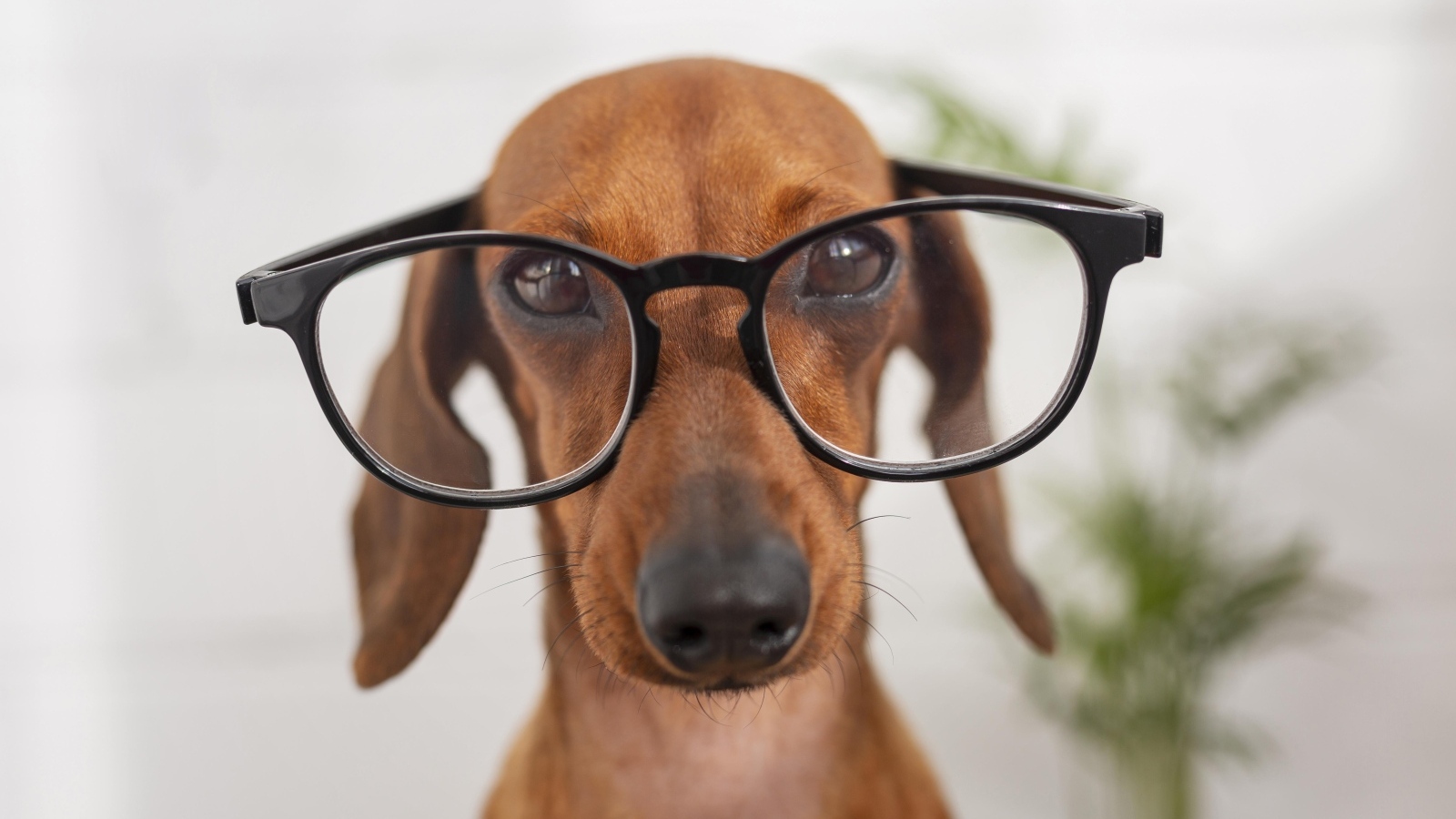 Коричневая такса в очках крупным планом - 5578x3392