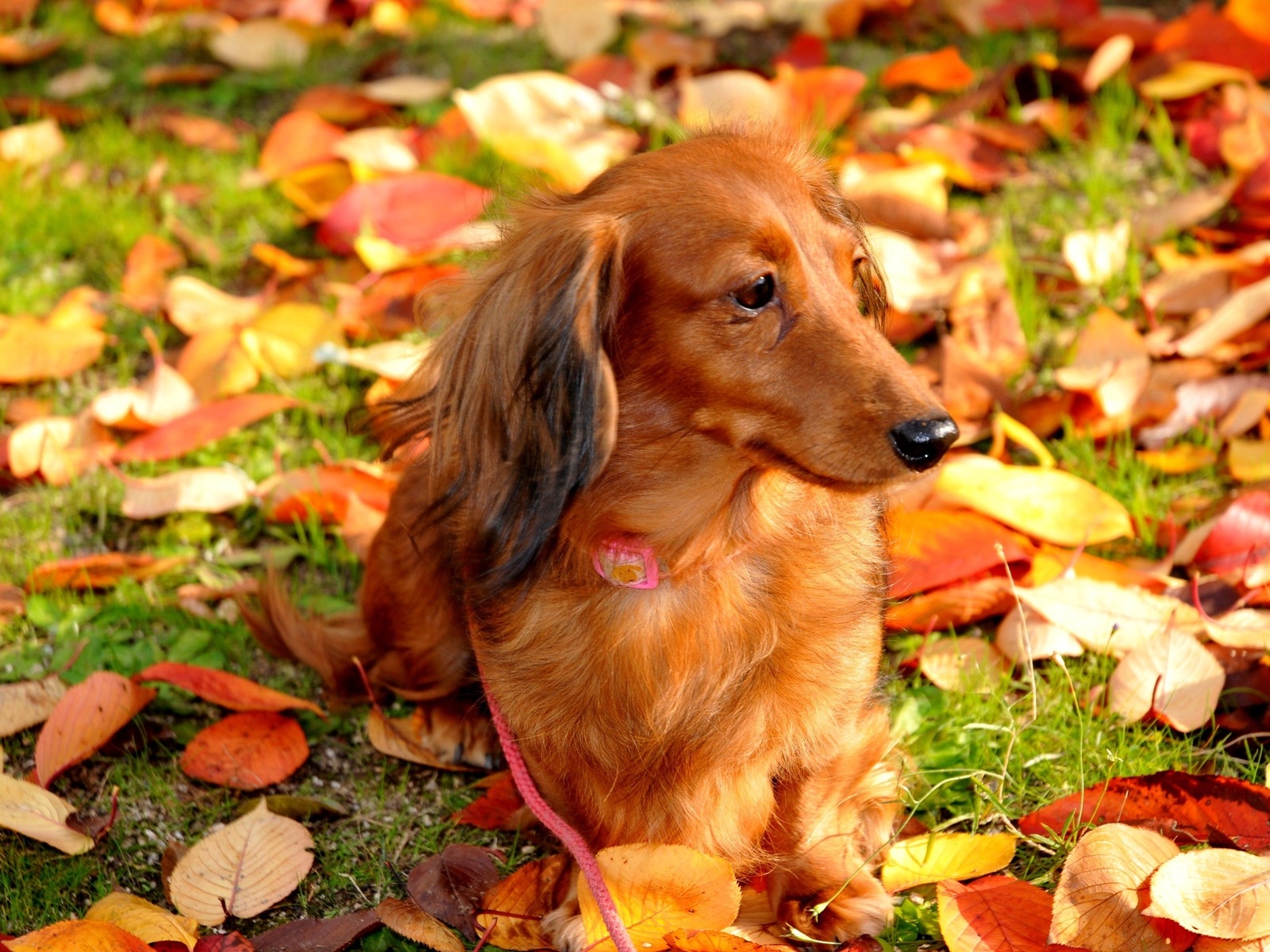 Такса на прогулке Обои для рабочего стола 1600x1200