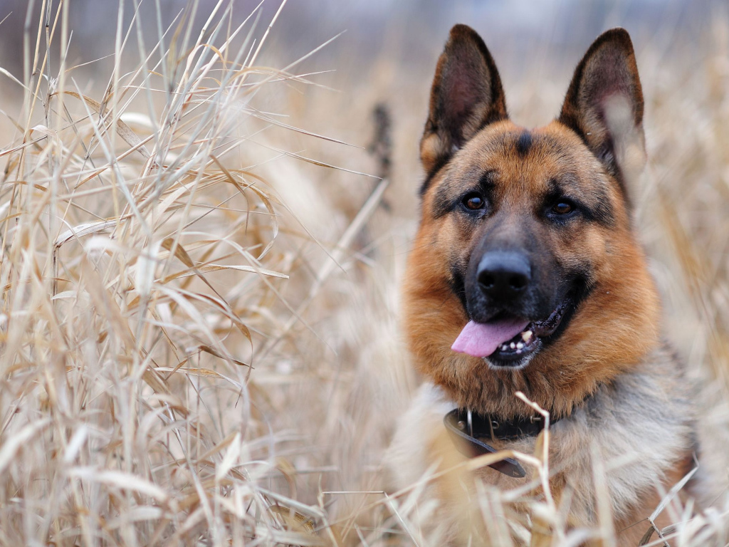 Немецкая овчарка среди травы Обои для рабочего стола 1024x768