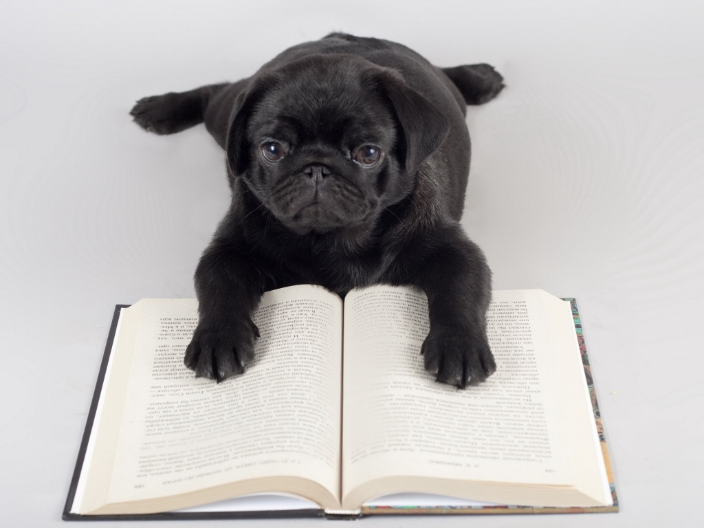 Собака учится читать Обои для рабочего стола 1024x768