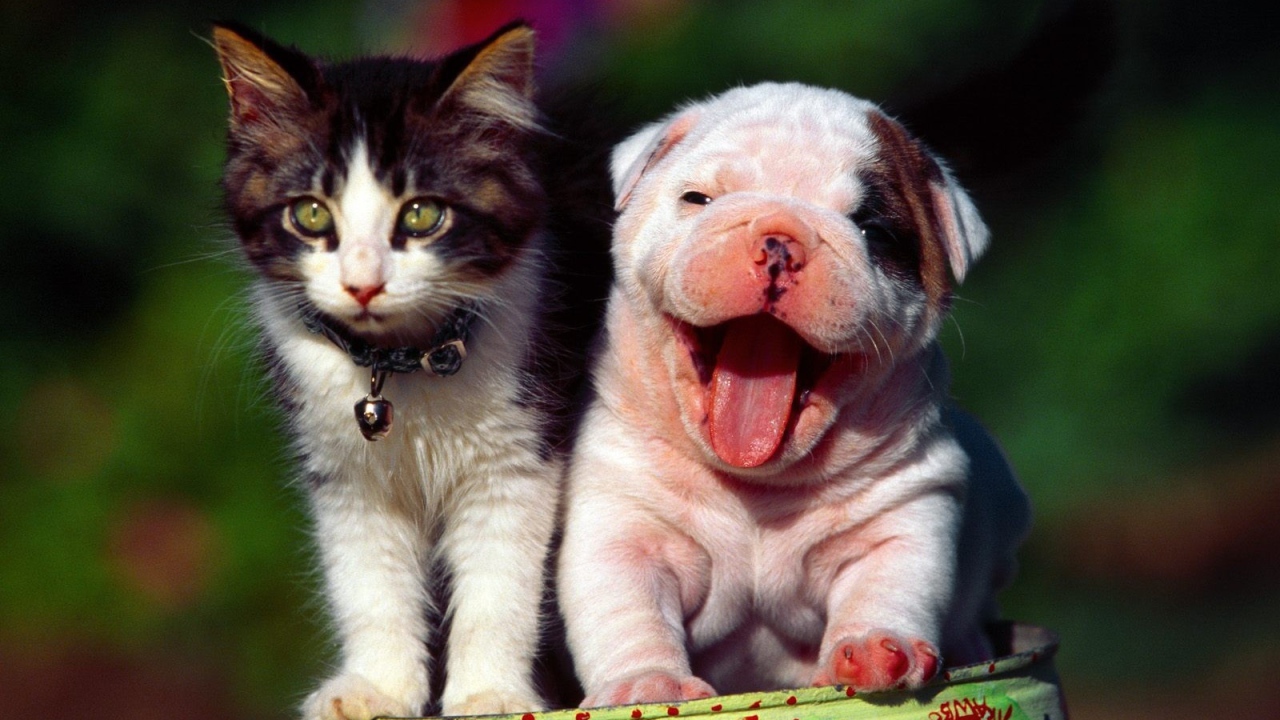 Щенок шарпей с котенком Обои для рабочего стола 1280x720