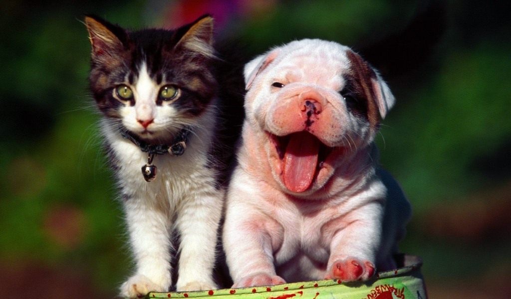 Щенок шарпей с котенком Обои для рабочего стола 1024x600