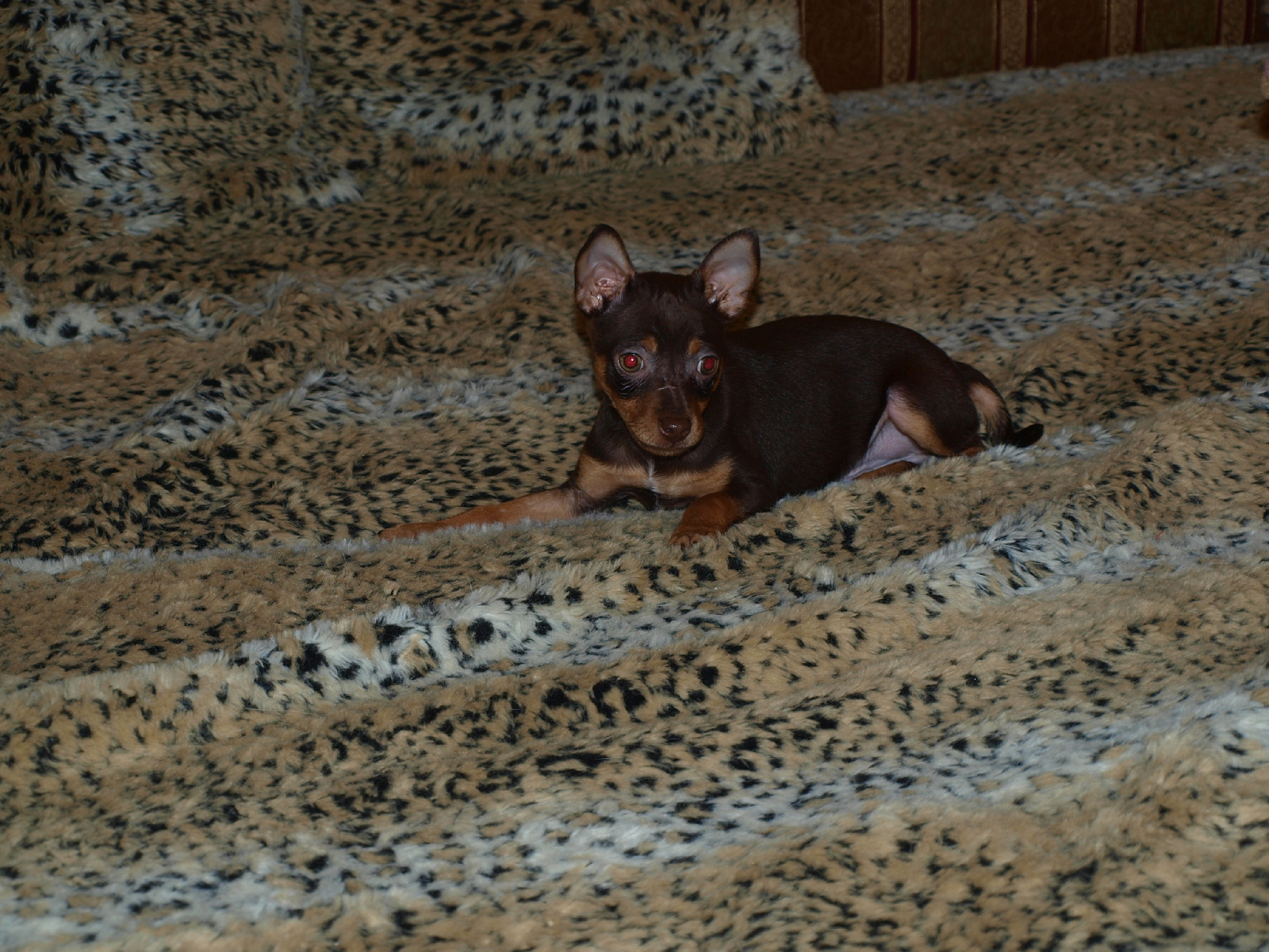 Младенец Карликовый пинчер на кровати - 1600x1200