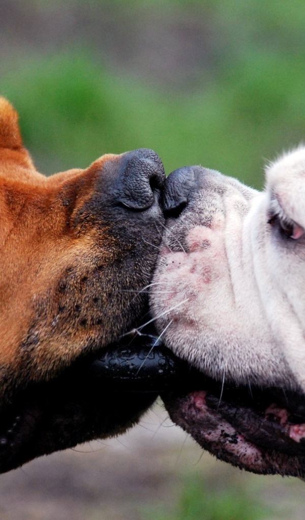 Бордоский дог целуется Обои для рабочего стола 600x1024