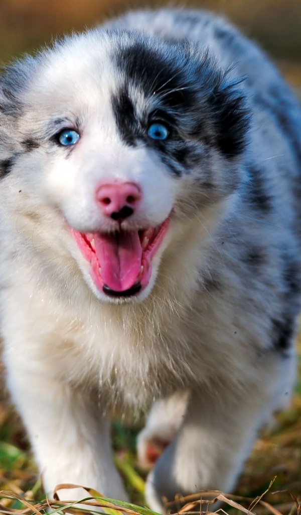 Счастливая австралийская овчарка бежит Обои для рабочего стола 600x1024