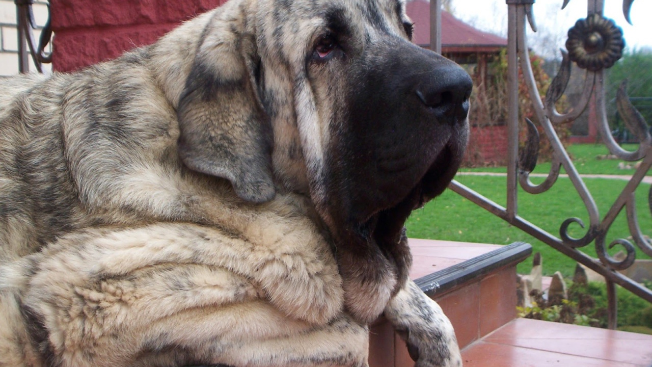 Испанский мастиф лежащий на лестнице Обои для рабочего стола 1280x720