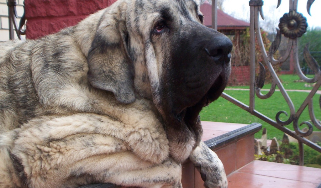 Испанский мастиф лежащий на лестнице Обои для рабочего стола 1024x600