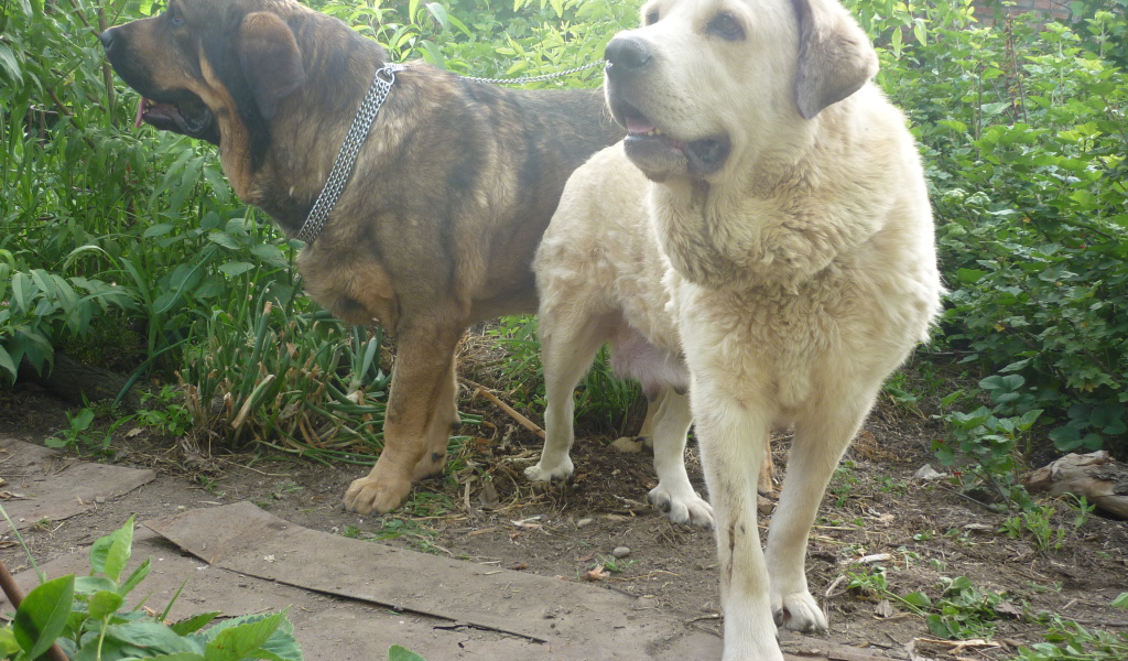 Два испанских мастифа в саду Обои для рабочего стола 1024x600