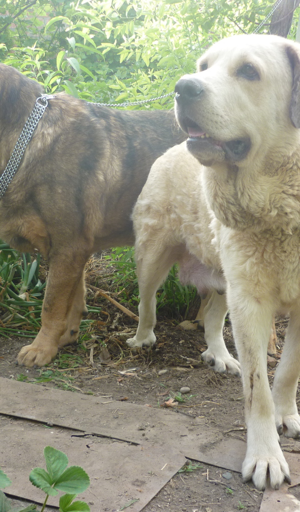 Два испанских мастифа в саду Обои для рабочего стола 600x1024