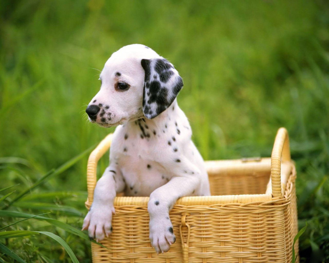 Далматин в корзине Обои для рабочего стола 1280x1024
