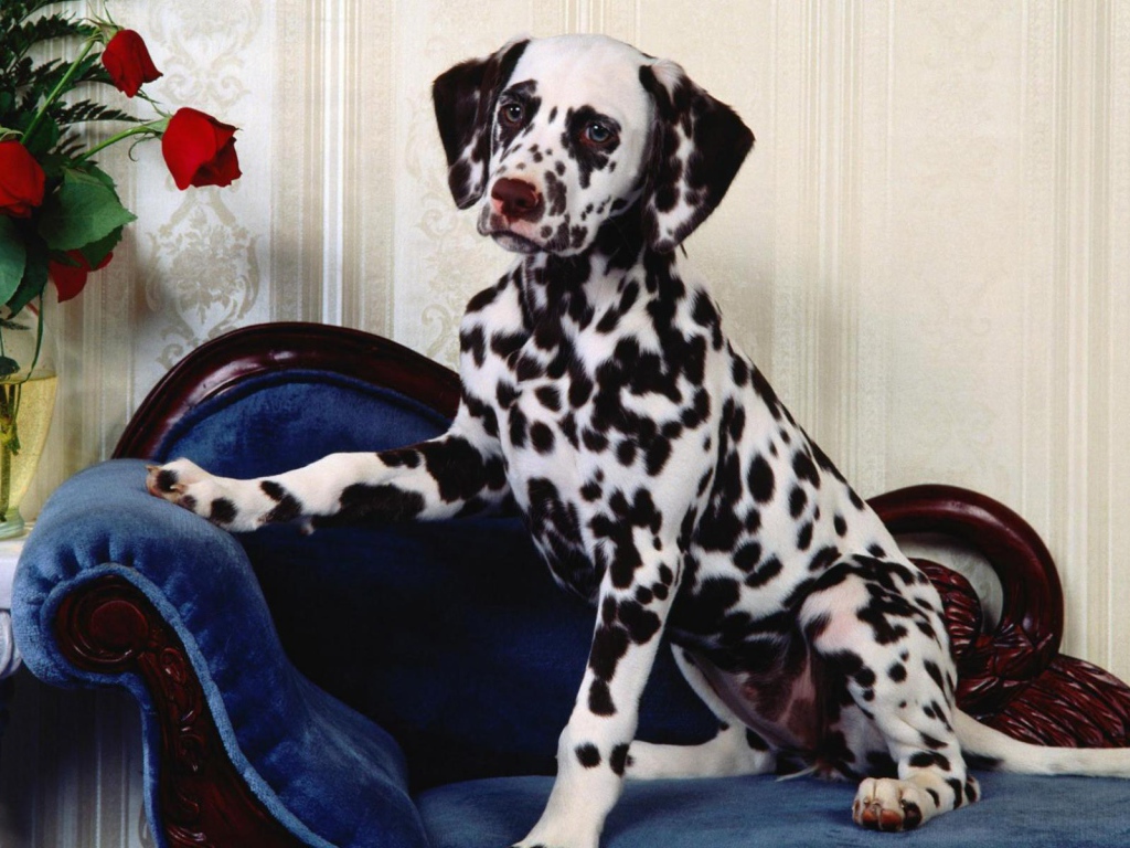 Далматин сидя на стуле Обои для рабочего стола 1024x768