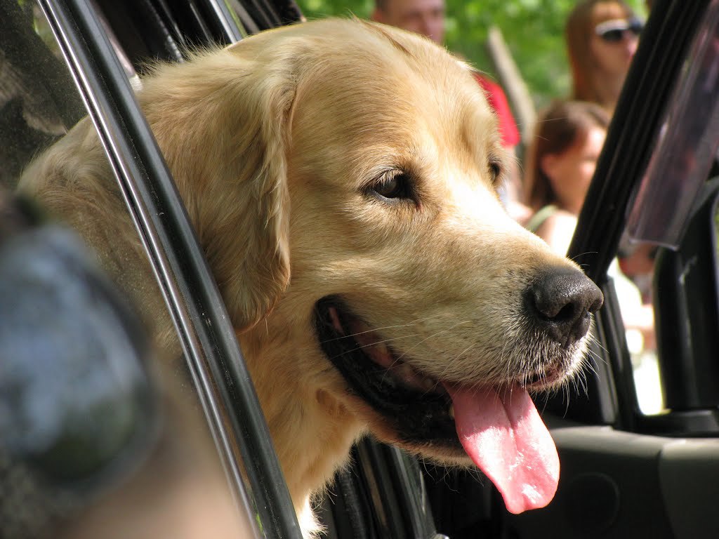 Золотой терьер в машине - 1024x768
