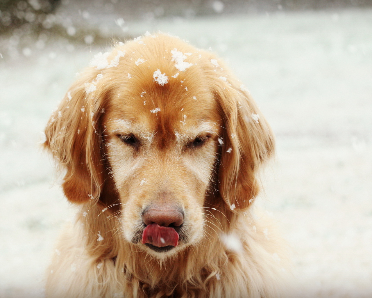 Золотой терьер под снегом Обои для рабочего стола 1280x1024