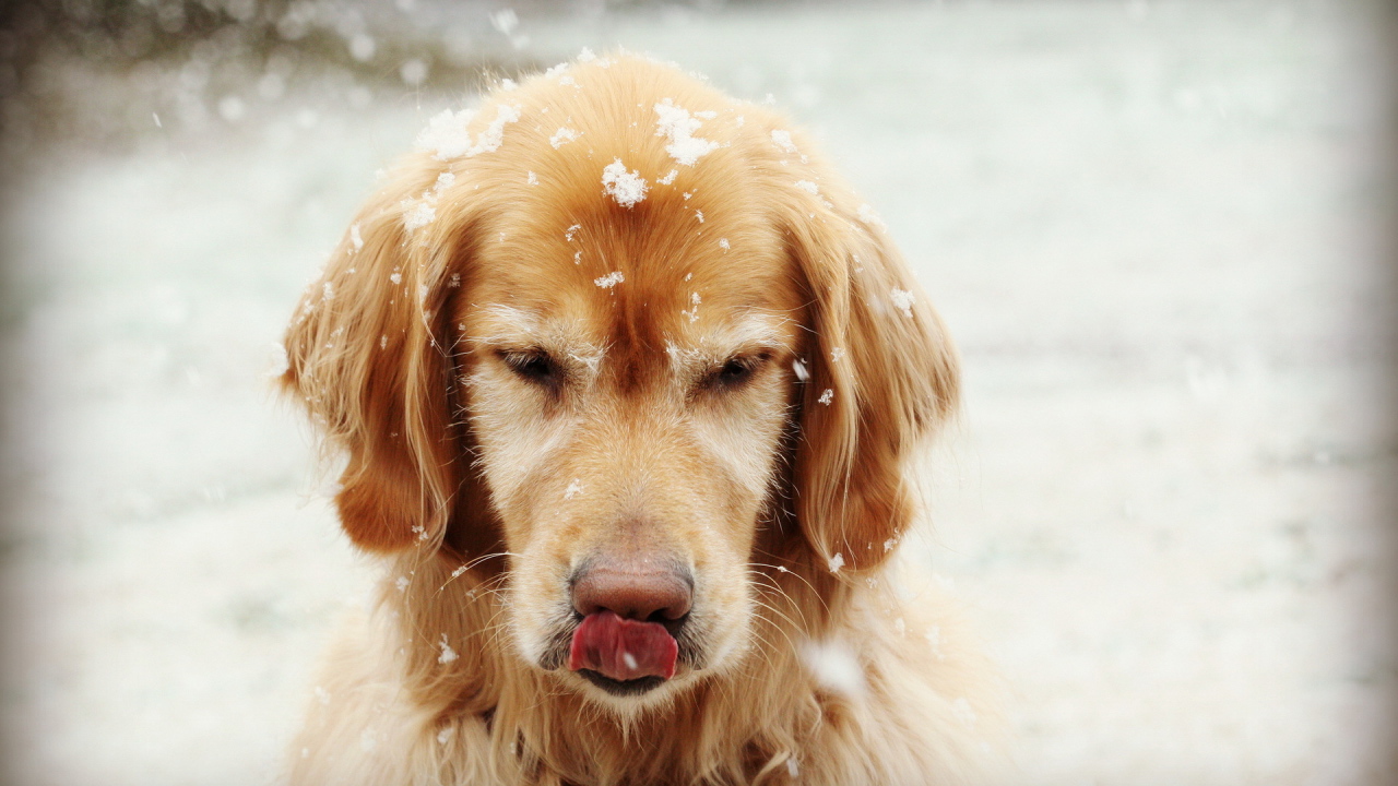 Золотой терьер под снегом Обои для рабочего стола 1280x720