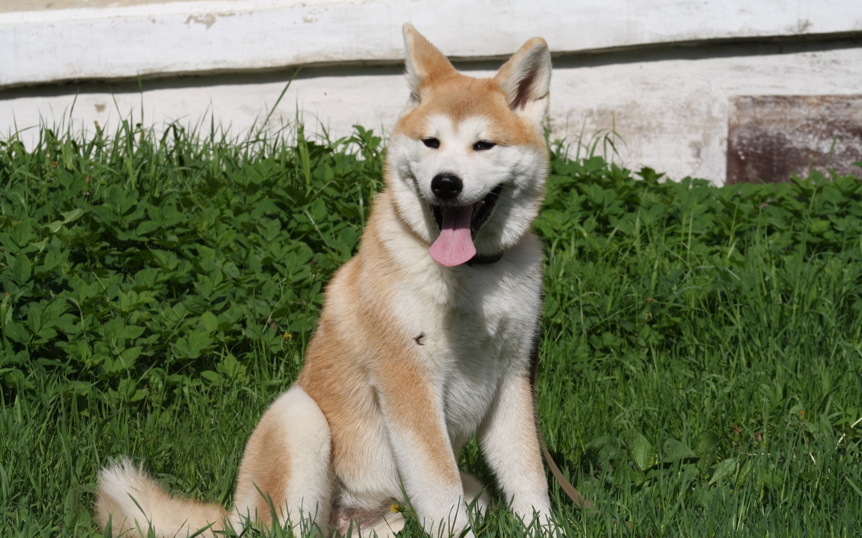 Уставшая акита-ину на траве Обои для рабочего стола 1680x1050