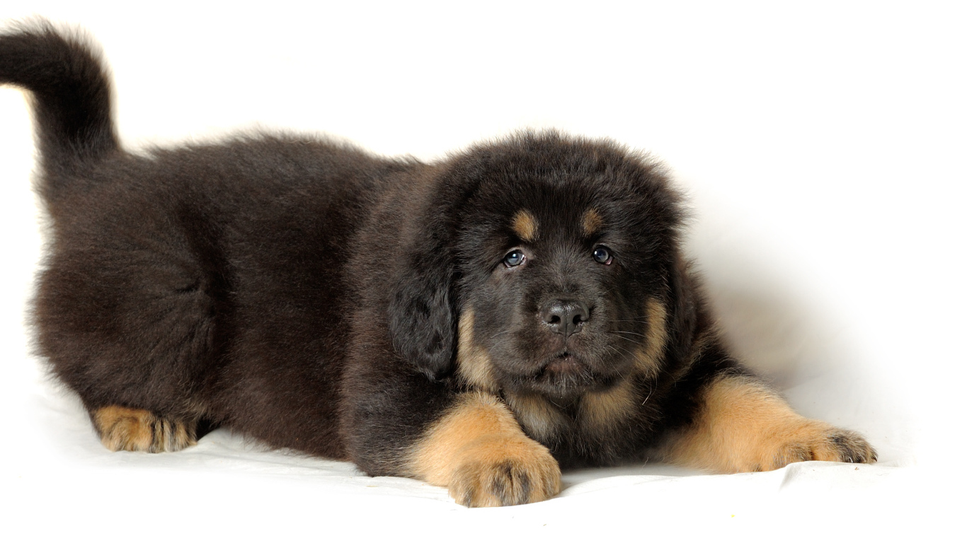 Тибетский мастиф на белом фоне Обои для рабочего стола 1366x768