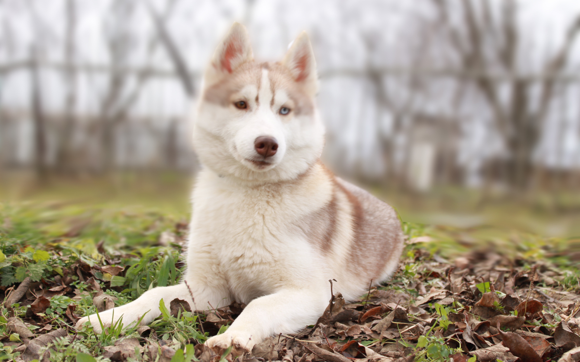 Белый Сибирский хаски во дворе Обои для рабочего стола 1920x1200