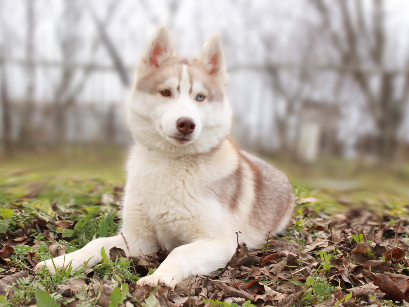 Белый Сибирский хаски во дворе Обои для рабочего стола 1400x1050