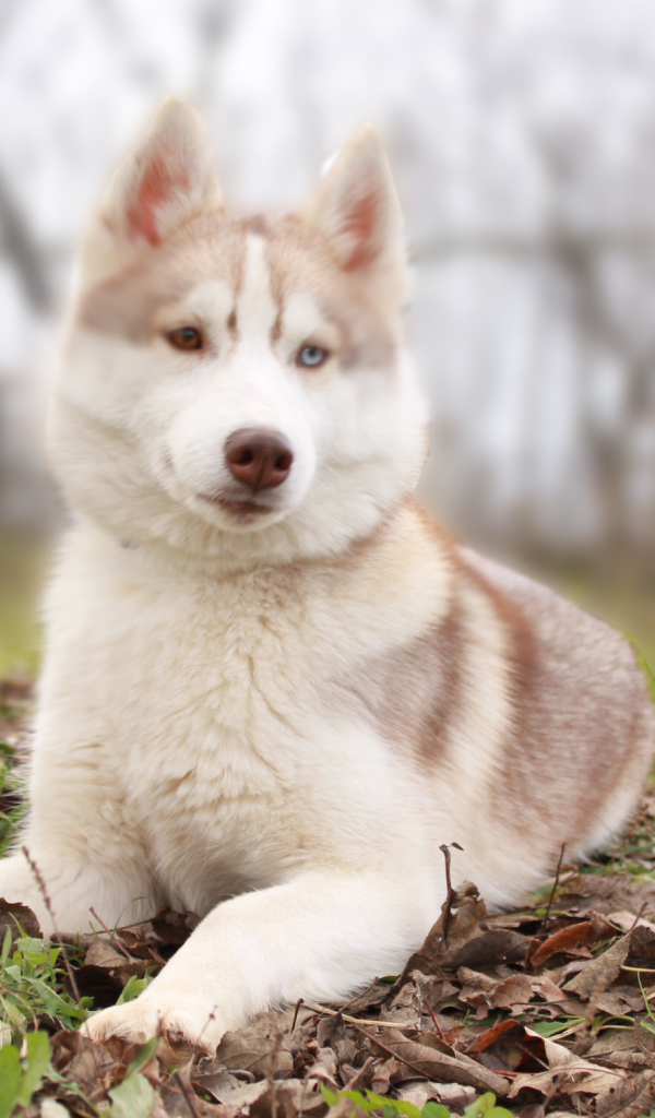 Белый Сибирский хаски во дворе Обои для рабочего стола 600x1024