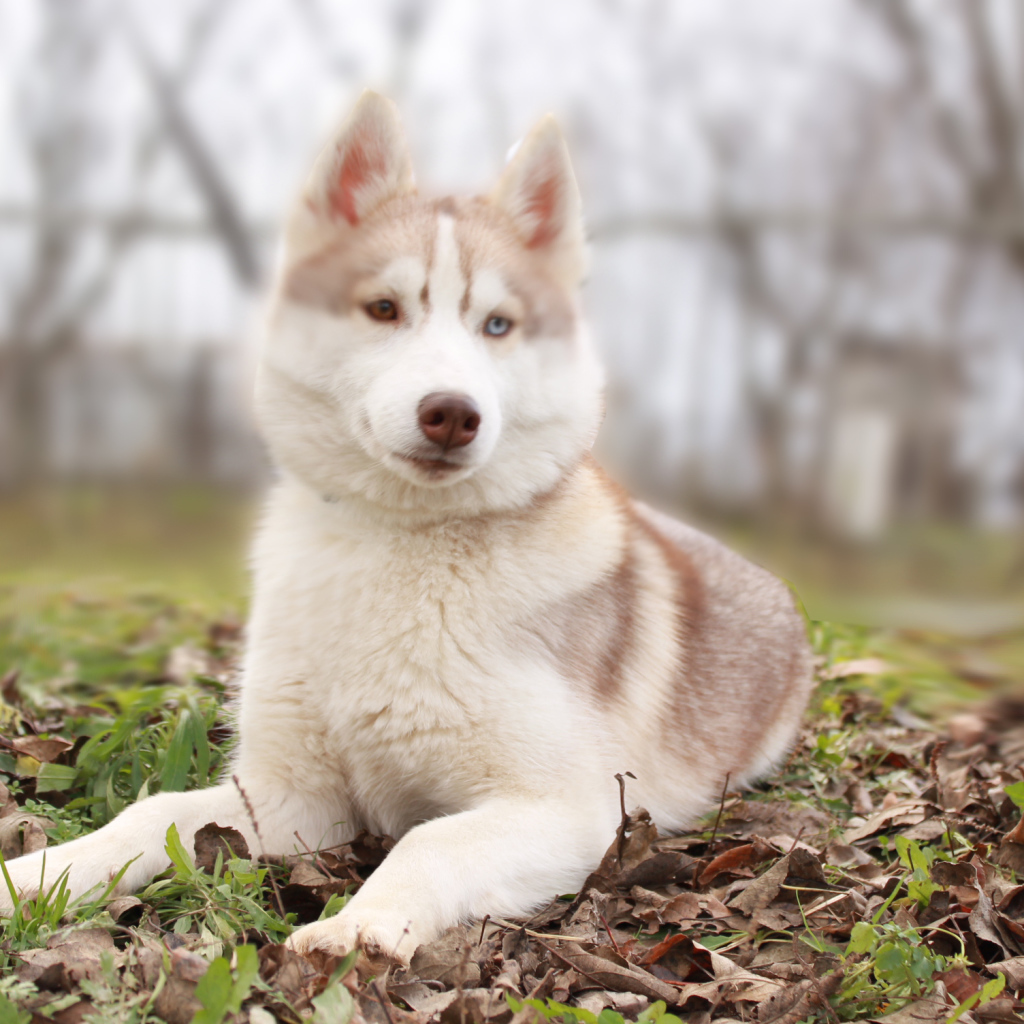 Белый Сибирский хаски во дворе Обои для рабочего стола 1024x1024