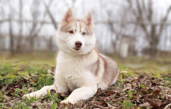 Белый Сибирский хаски во дворе - 2256x1504