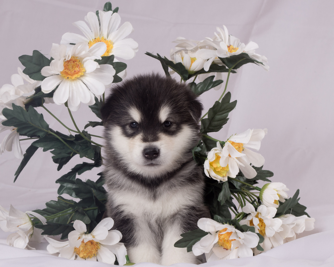 Маленький аляскинский маламут в цветах Обои для рабочего стола 1280x1024