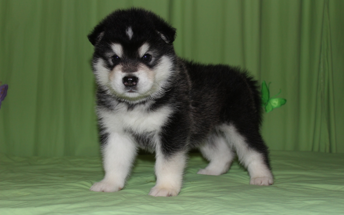 Щенок аляскинского маламута на зелёном фоне - 5184x3456