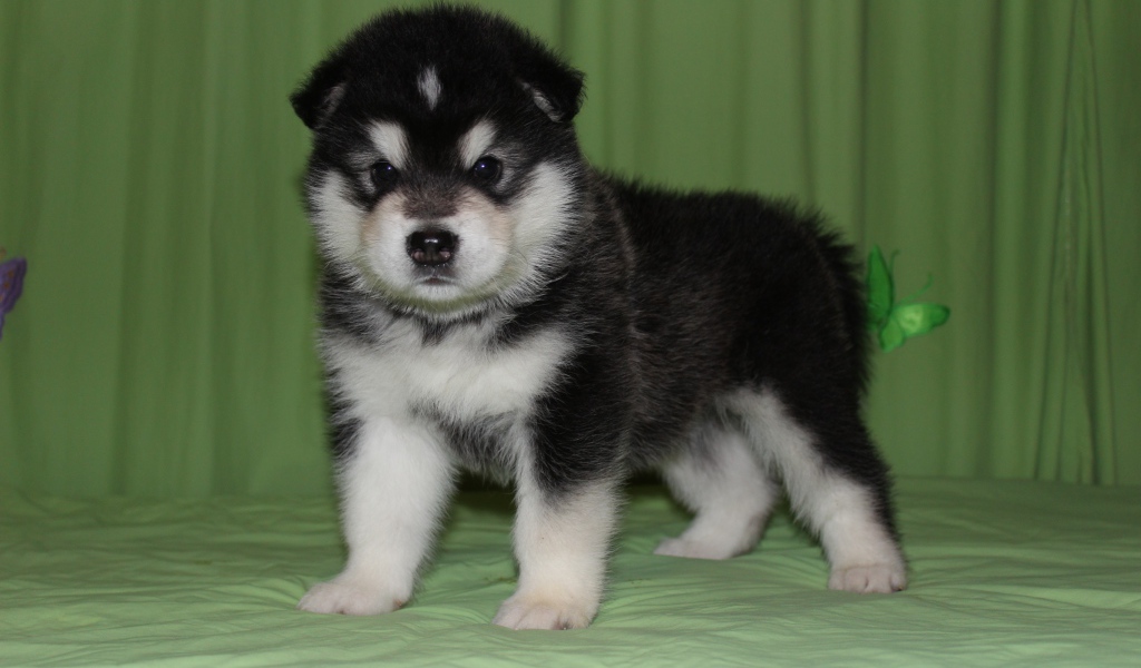 Щенок аляскинского маламута на зелёном фоне Обои для рабочего стола 1024x600