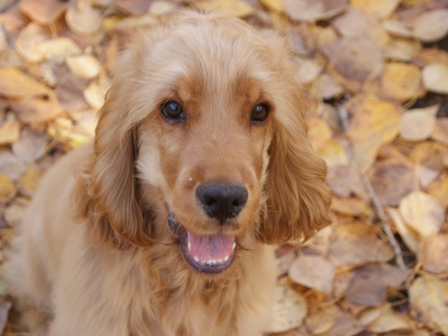 Английский кокер-спаниель на осенних листьях - 3872x2592