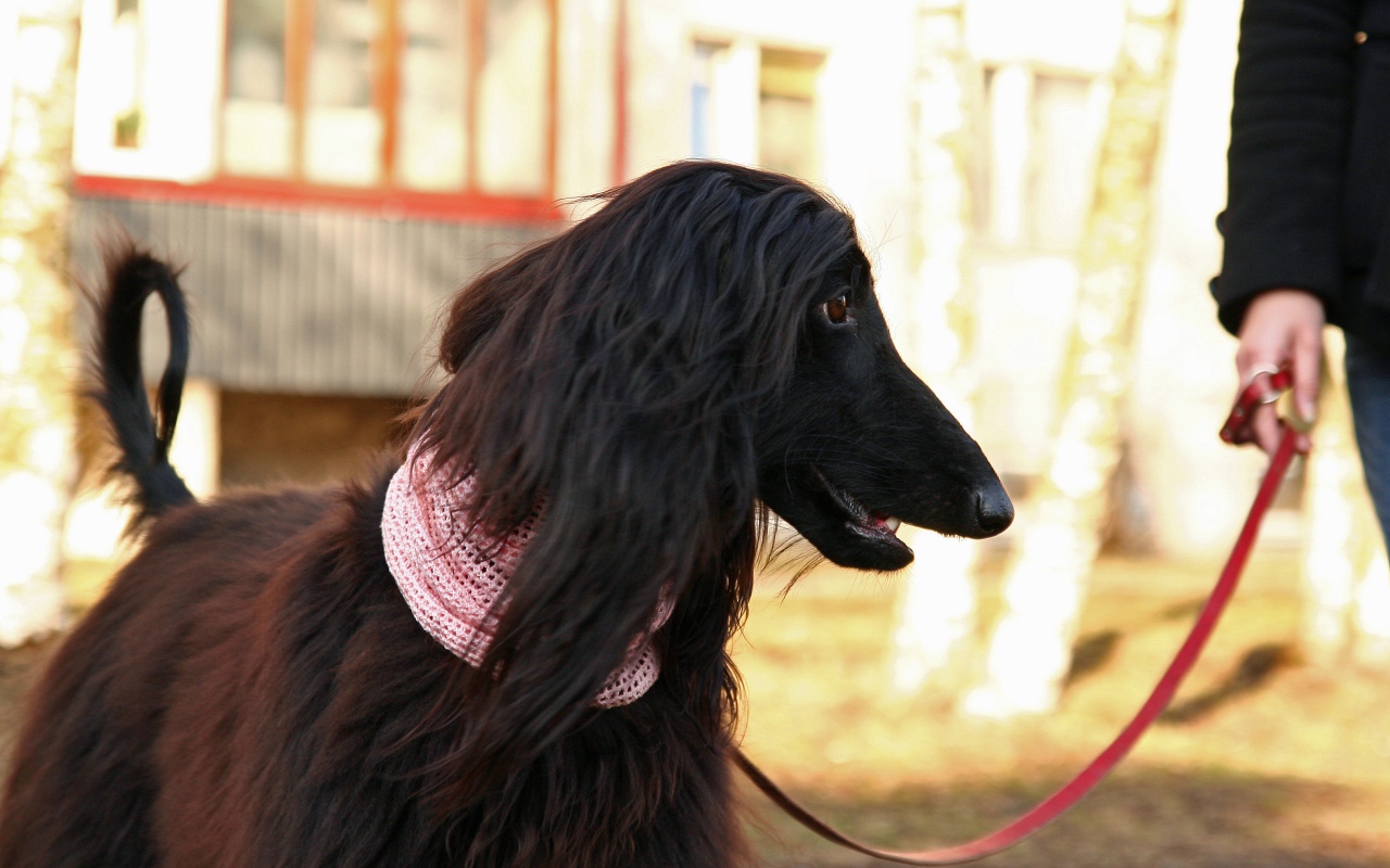 Афганская борзая на прогулке Обои для рабочего стола 1280x800