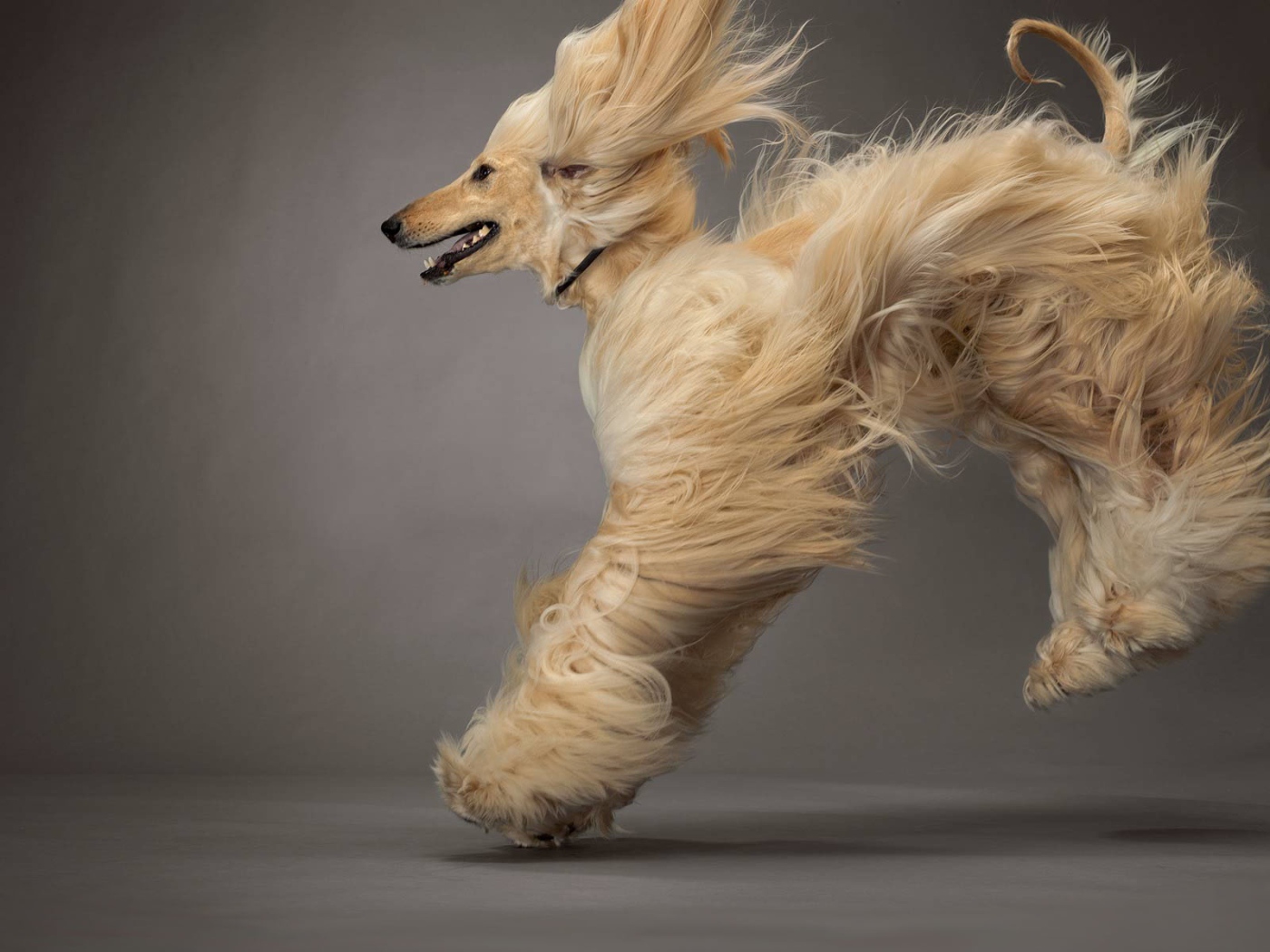 Афганская борзая в прыжке Обои для рабочего стола 1400x1050