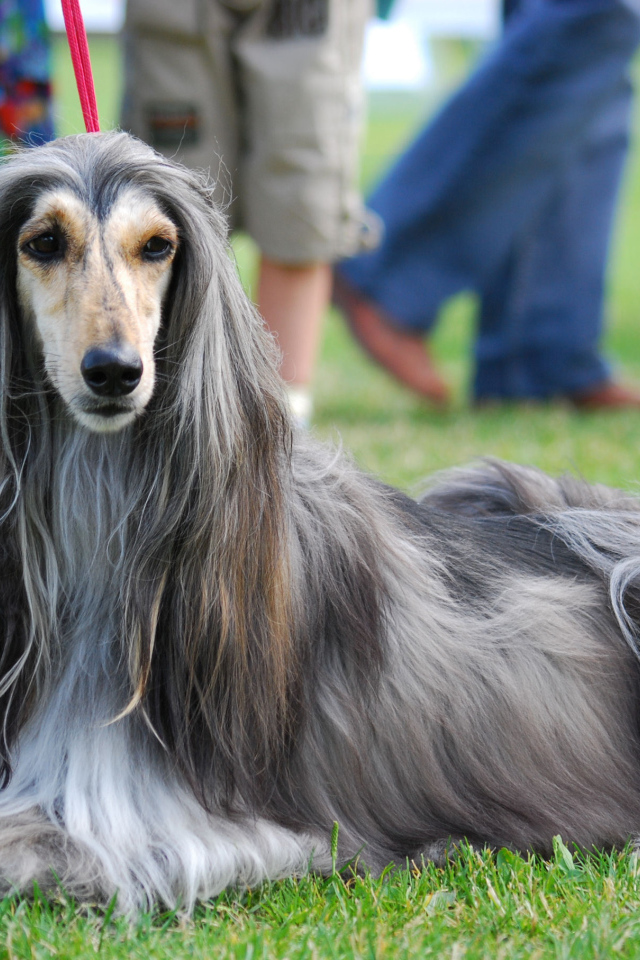 Афганская борзая на выставке собак Обои для рабочего стола 640x960