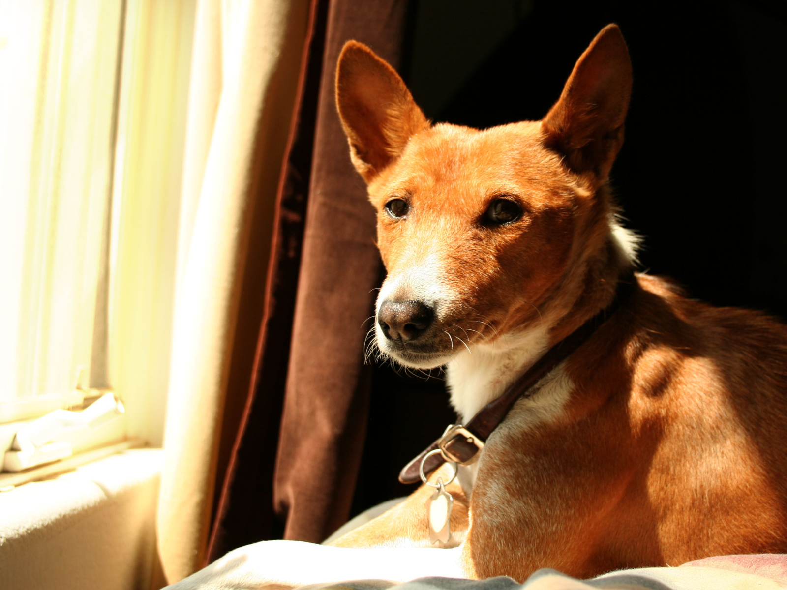 Красивая собака породы басенджи возле окна Обои для рабочего стола 1600x1200