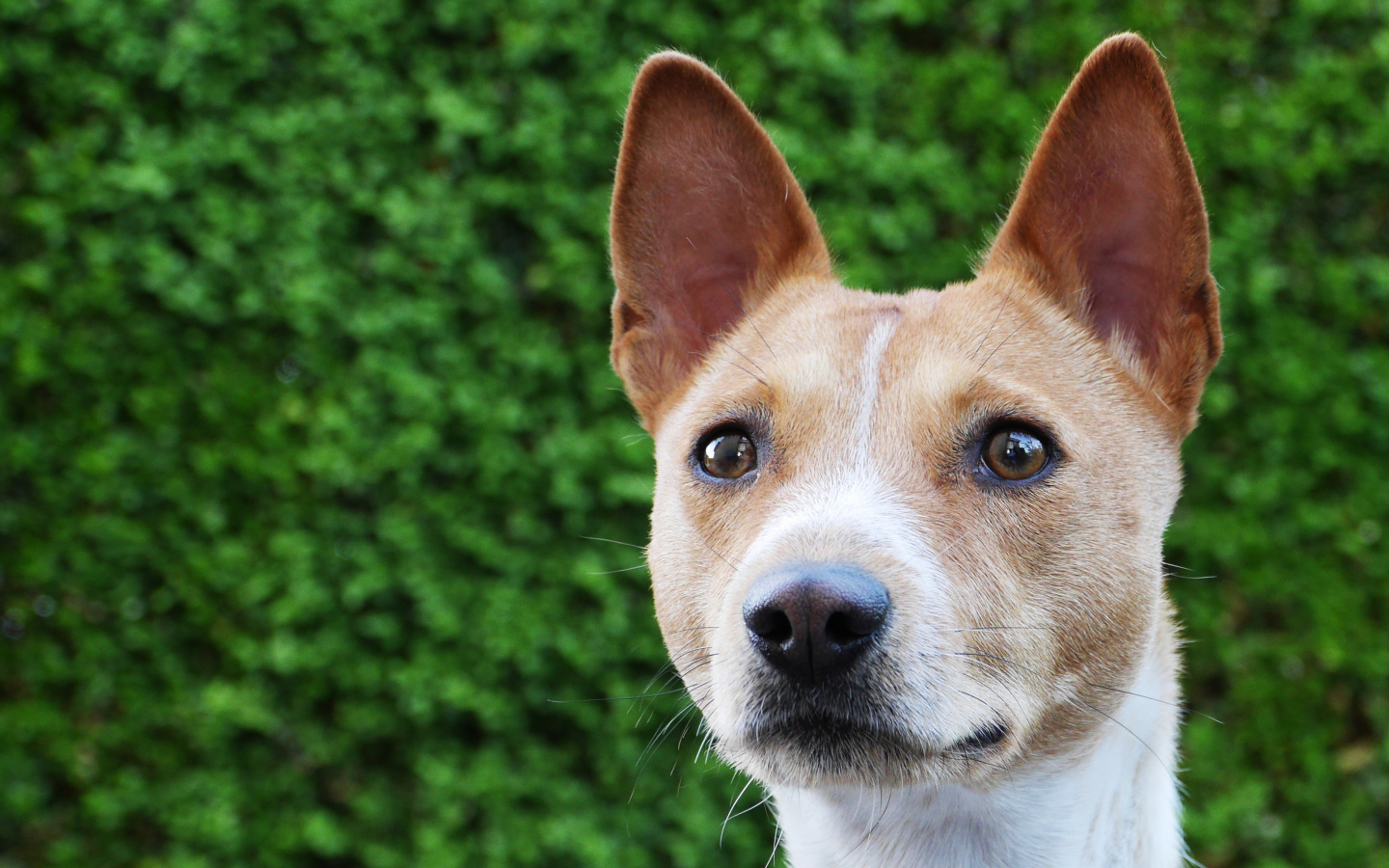 Красивая собака породы басенджи на фоне кустарника - 3252x2268