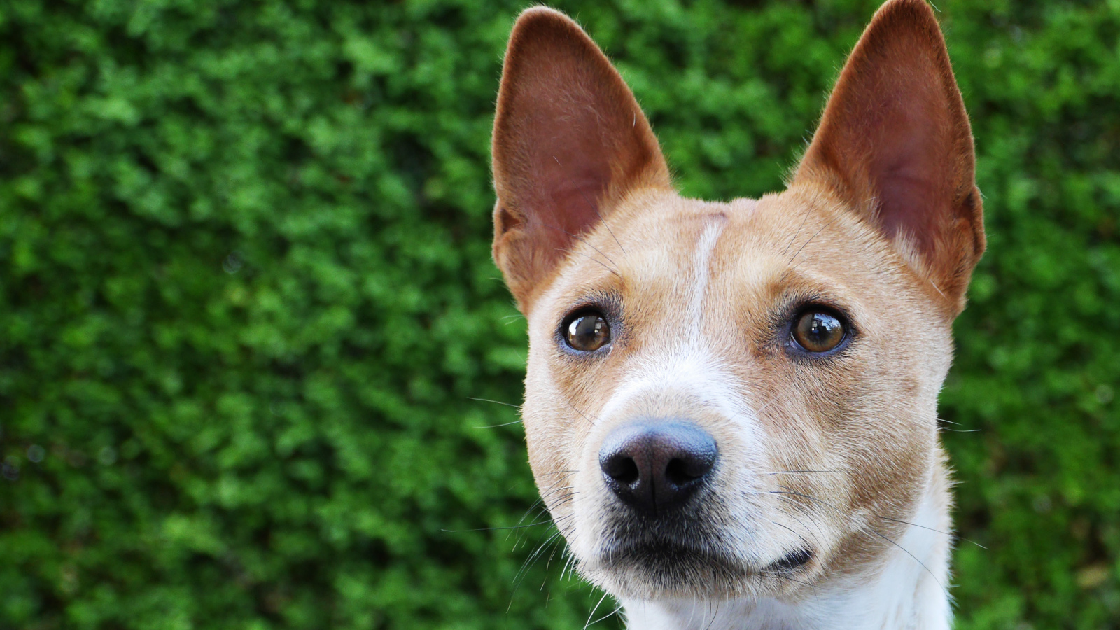 Красивая собака породы басенджи на фоне кустарника - 3252x2268
